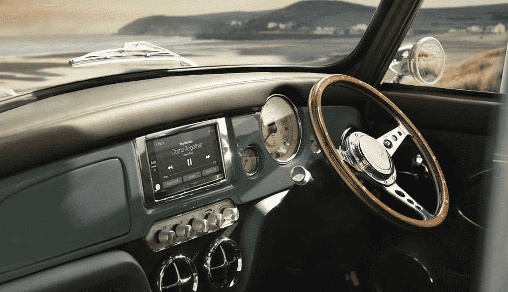 The Mini Remastered features a number of technological updates, although that’s a low bar to clear – the original Mini wasn’t exactly extravagantly kitted-out even by 1959 standards. The infotainment system includes Apple CarPlay, Android Auto, a four-speaker sound system, keyless ignition, a USB connector and charging point. Push-button start and remote central locking are also included.