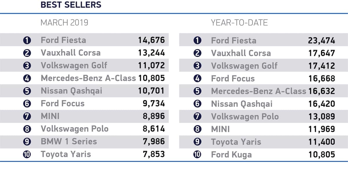 Despite the Fiesta’s ongoing dominance of the UK car market, it was a slightly disappointing month for Ford. The Focus slipped back from second to sixth, while the Kuga and EcoSport fell out of the top ten altogether. Overall, Ford registrations were down 19% compared to the same month last year.